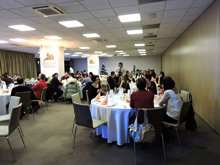 Traditional new year celebration, where employees are informed about the results of the work, the growth of companies and particularly about the objectives and expectations of the coming year. Celebration party was held at Hotel City Maribor with Manca Spik.